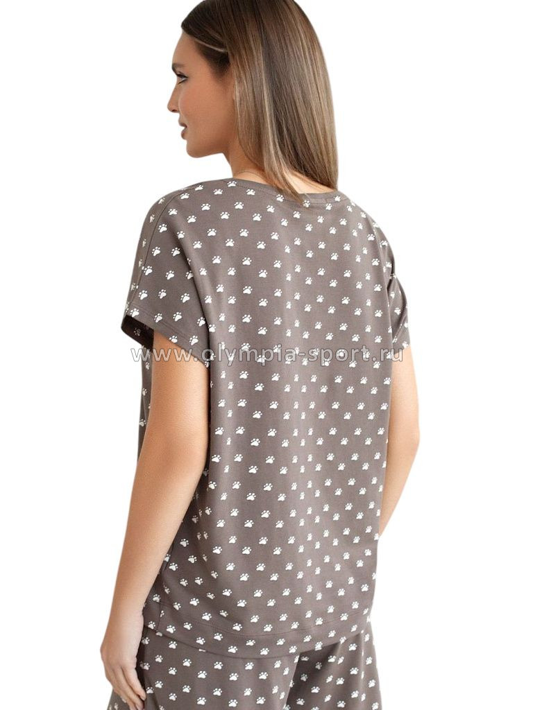 Футболка женская Vilatte D49.153 кофе-белый лапы
