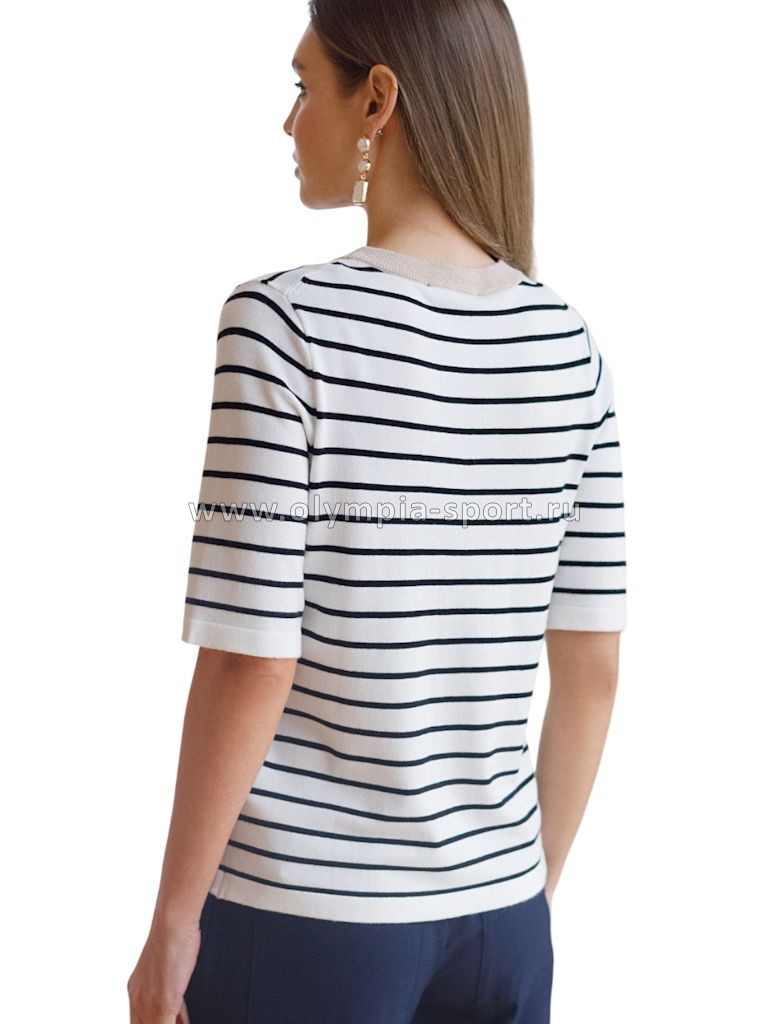 Свободный джемпер белого цвета в контрасную полоску из вискозы – выбор для тех, кто ценит стильный и современный образ. Благодаря средней длине и свободному крою джемпер гармонично смотрится на разных типах фигуры, а так же подходит на большие размеры, подчеркивая достоинства фигуры и скрывает возможные недостатки. Мягкая вискоза обеспечивает приятные ощущения к телу и подходит для ежедневной носки. Круглый ворот аккуратно подчеркивает линию шеи и подходит для разных вариантов укладки волос. Мягкий люрекс на контрастной отделке придает легкое мерцание, делая джемпер подходящим не только для повседневных выходов, но и для особых случаев. Принт выполнен в виде полосок, что делает классический джемпер актуальным в любом сезоне и который легко сочетается с разными стилями одежды. Рукав средней длины обеспечивает удобство и практичность в носке, позволяя использовать джемпер в прохладную погоду или для создания многослойных образов. Этот джемпер станет отличным дополнением гардероба, подчеркивая стиль и создавая легкую атмосферу непринужденности.