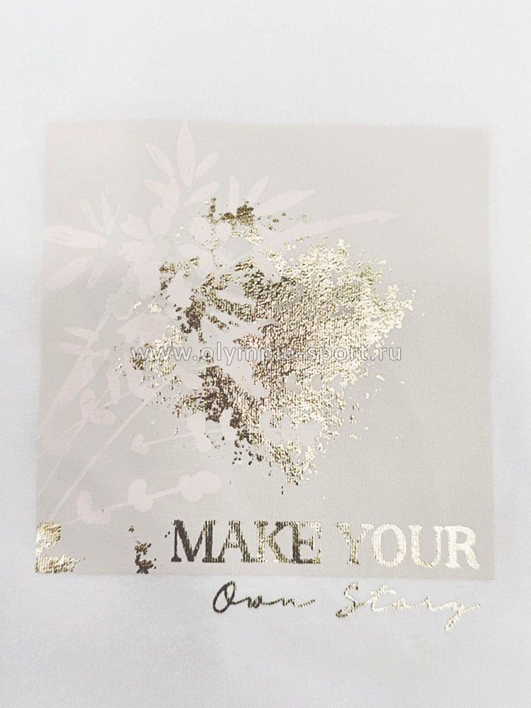 Перевод принта: Make your own story — будь автором своей истории. Футболка выполнена из премиального хлопка. Авторский принт нанесен фактурными красками и фольгой с устойчивым покрытием. Наличие эластана в составе гарантирует комфорт и формоустойчивость. Принт станет дополнением не только в повседневных сочетаниях, но и отлично подойдет к вечерним образам. Изделие дополнено фирменным металлическим логотипом бренда.