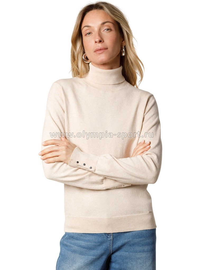 Водолазка тонкой вязки выполнена из хлопка. Лаконичная модель дополнена манжетами с золотистыми пуговицами. Изделие не сковывает движений и подходит для любой фигуры. Мягкая пряжа очень приятная к телу не колется и сохраняет тепло при этом не перегревая.