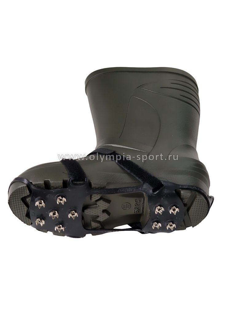 На подошве 10 металлических шипов длиной по 5 мм (6 шипов в передней части и 4 шипа защищающих пяточную часть ноги).